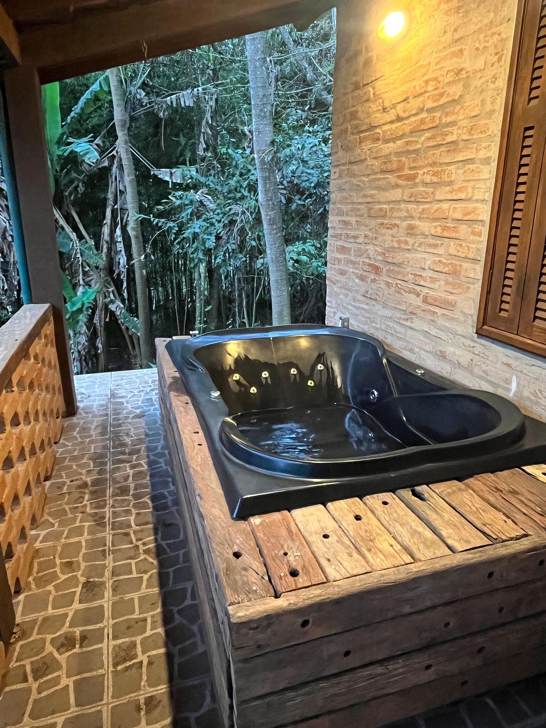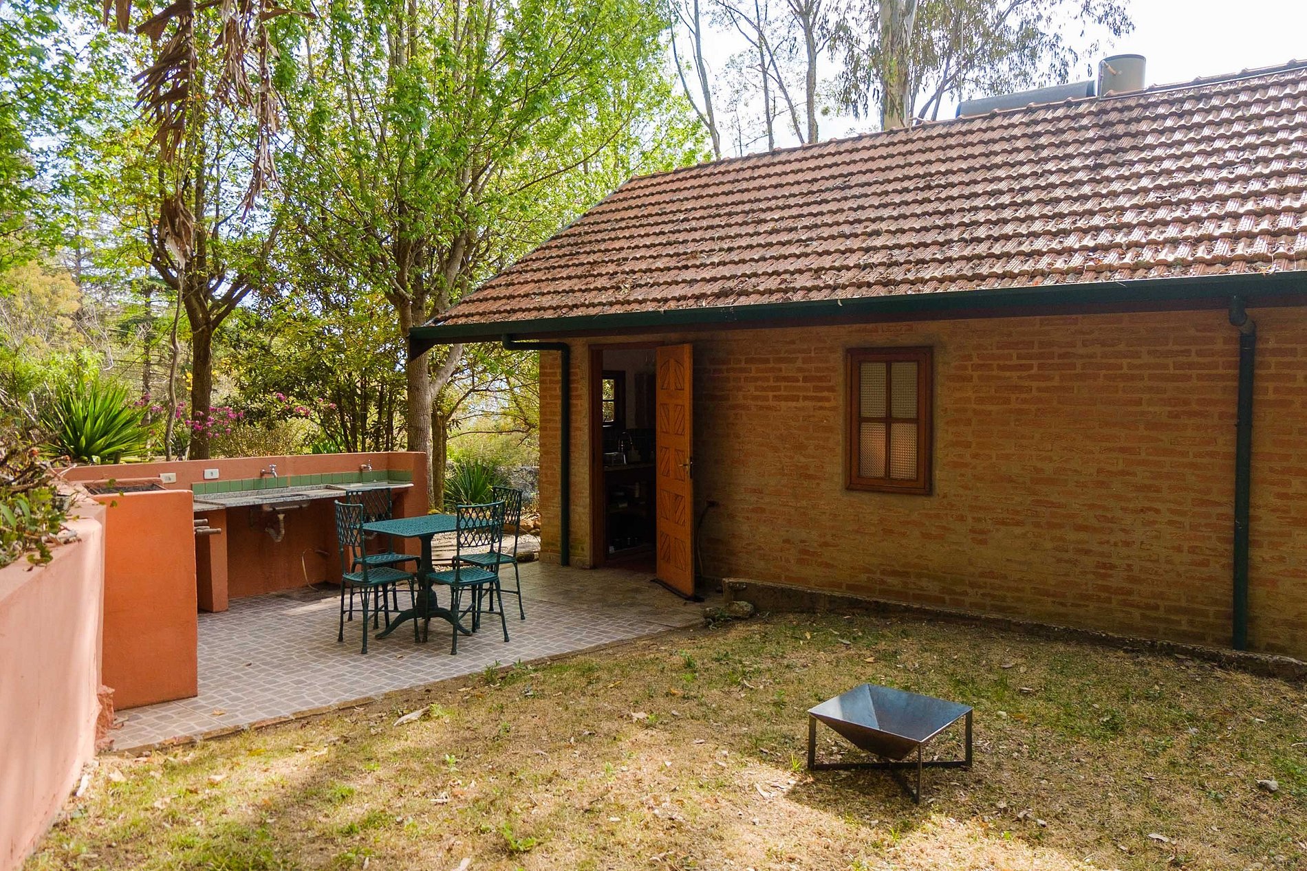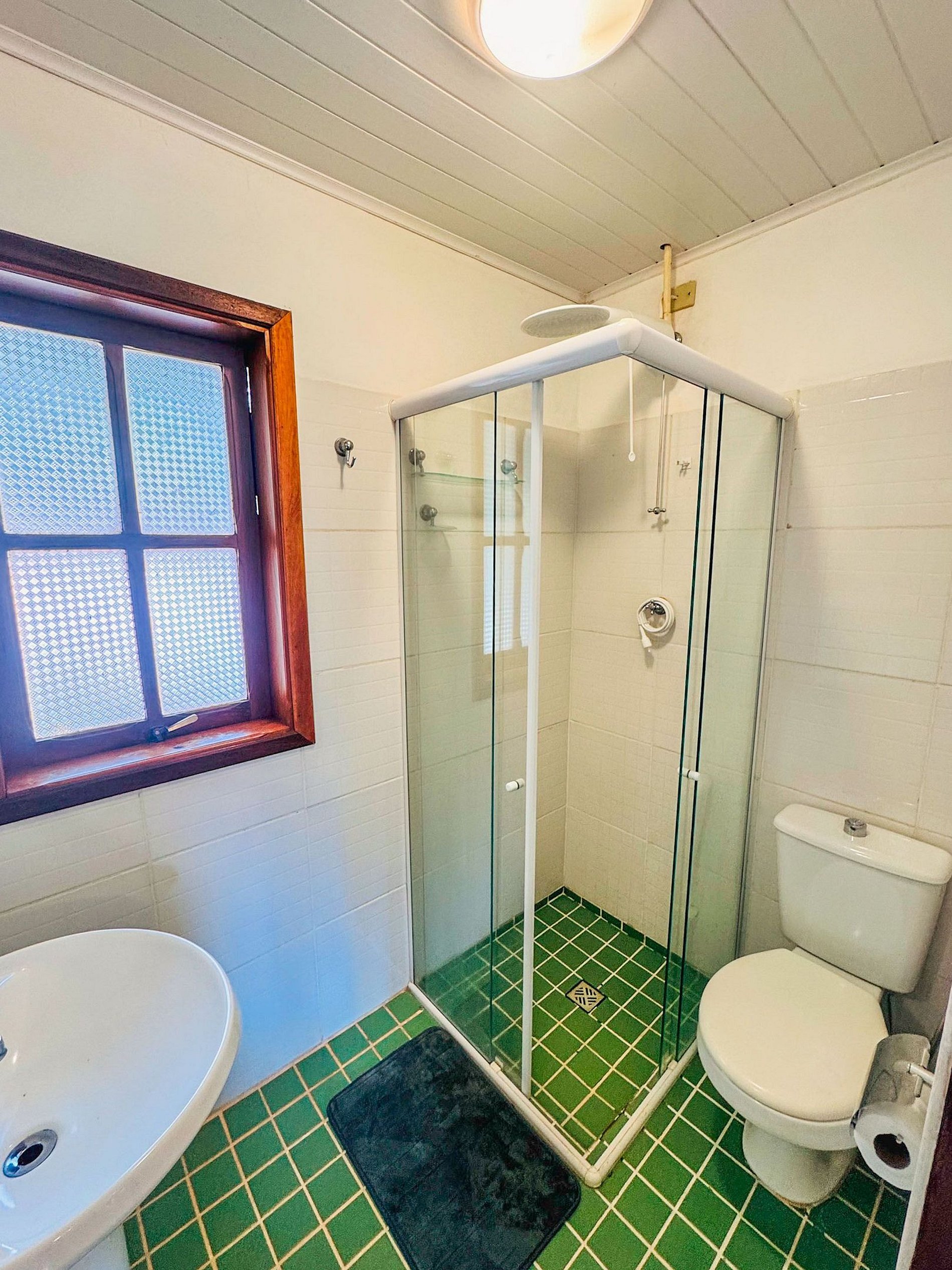 Sala com lareira, cozinha equipada, banheiro com chuveiro elétrico e área de churrasqueira. Acomoda até 4 pessoas confortavelmente (possível receber uma 5a pessoa, que durma no futon da sala)