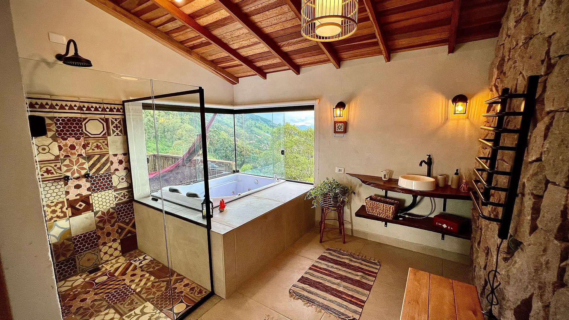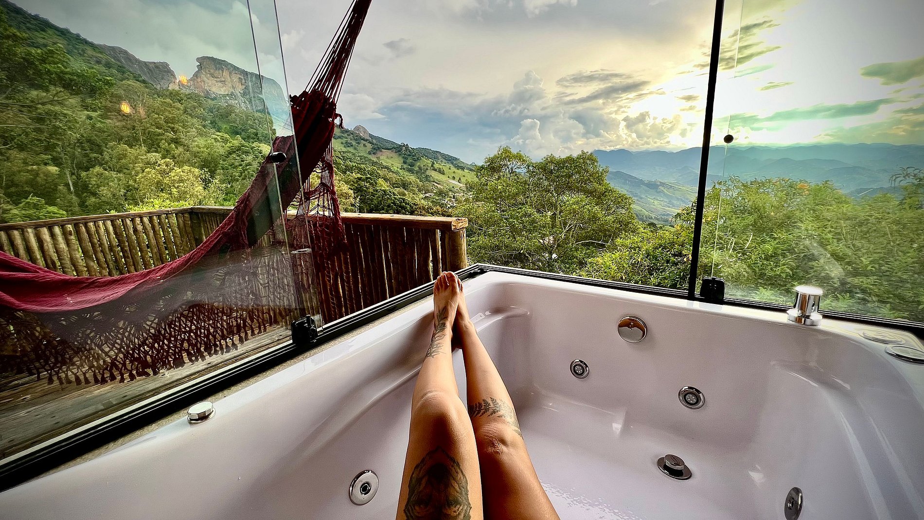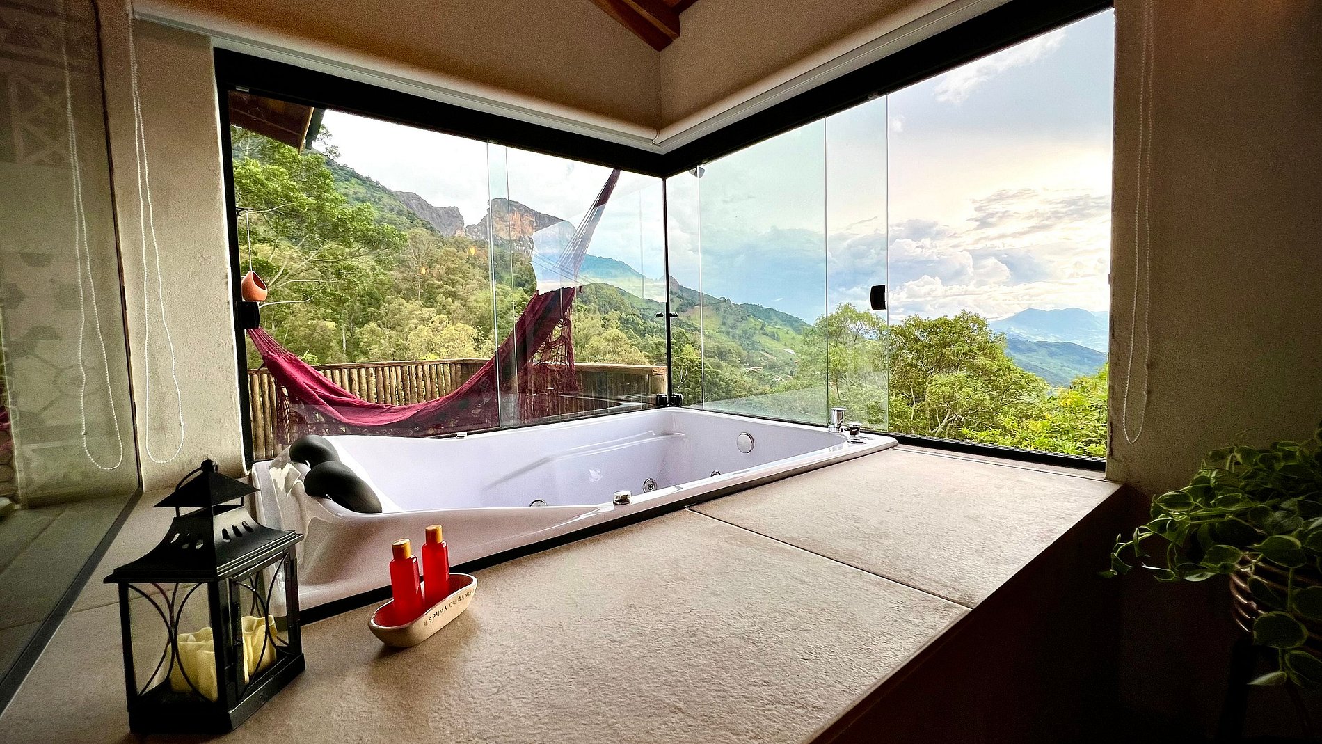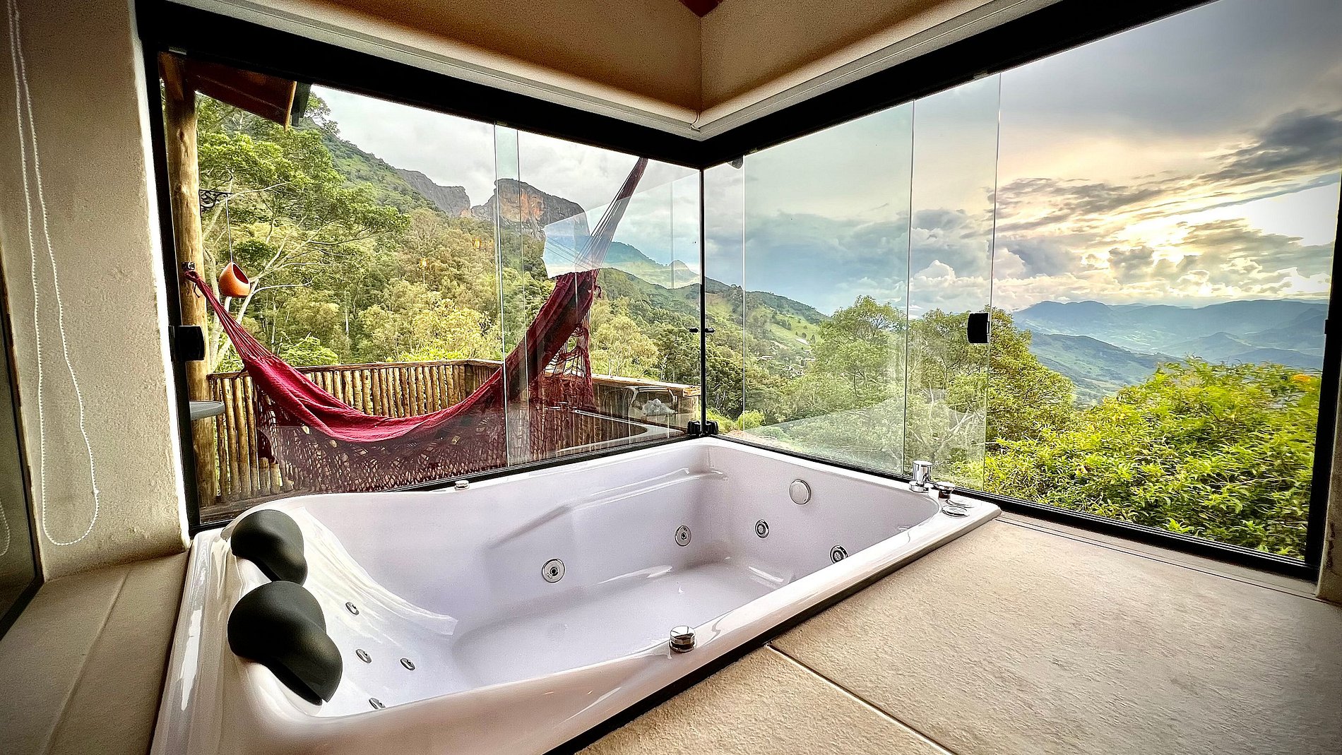 - banheira dupla de hidromassagem com vista para Pedra do Baú