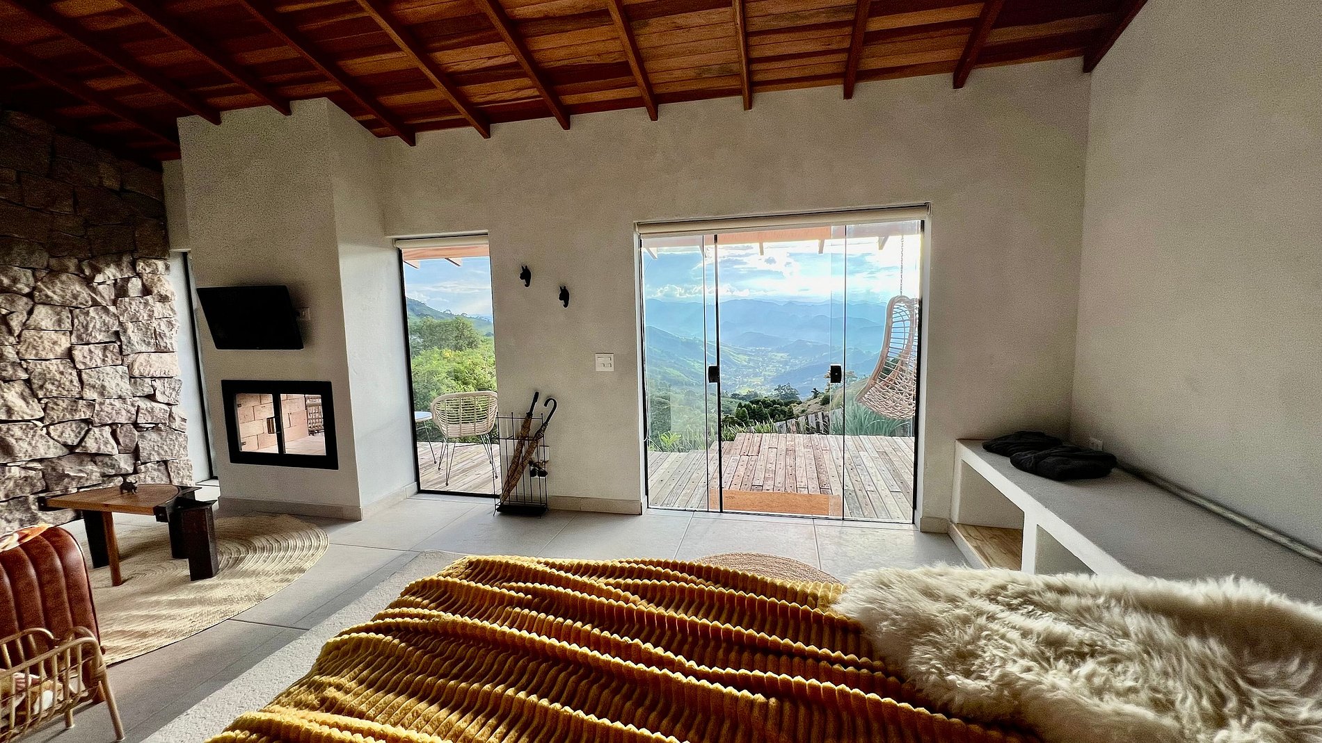 Cabana para um casal com vista incrível para as montanhas e Pedra do Baú, com ambientes integrados e muito conforto!