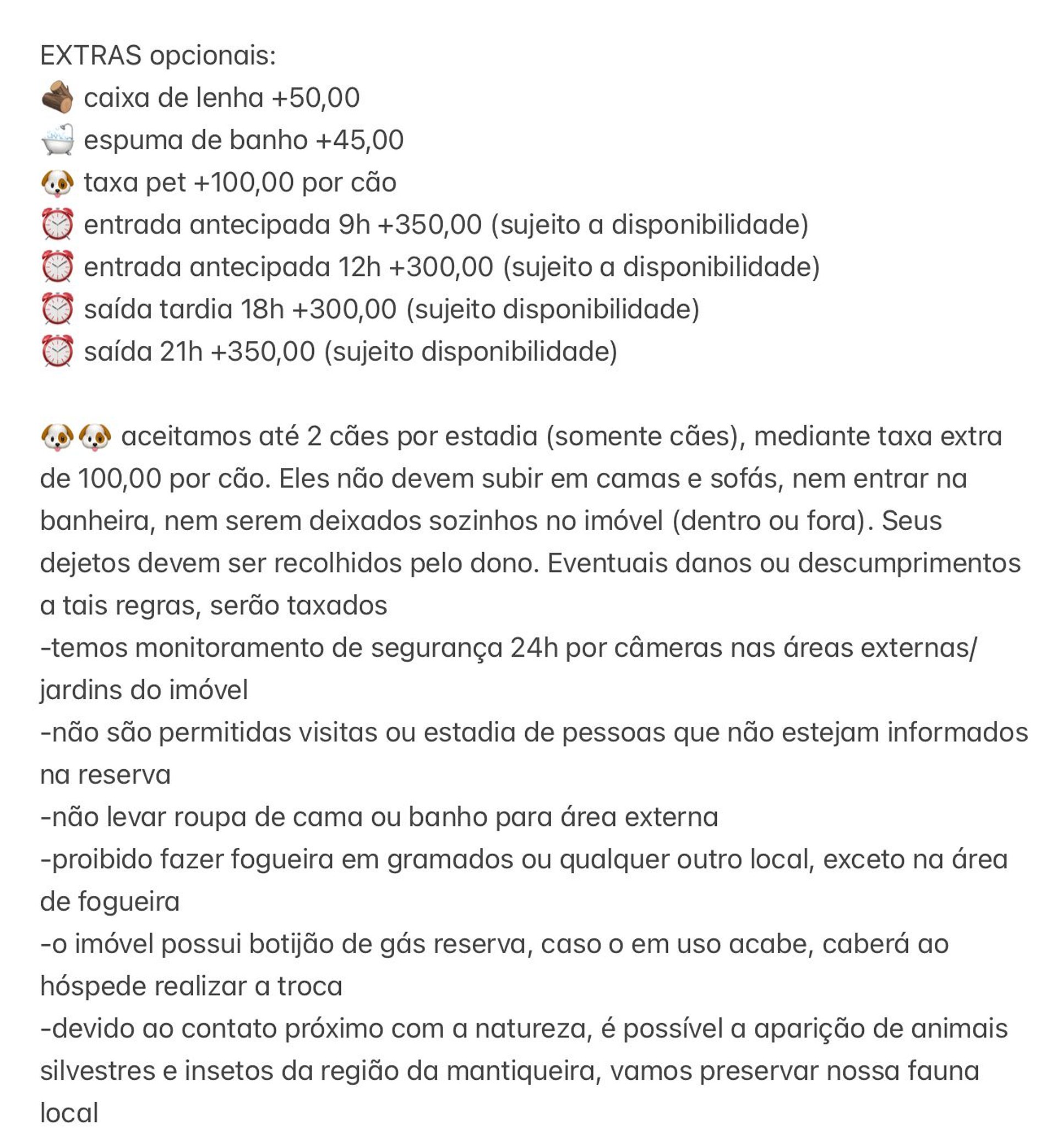 -não são permitidas visitas ou estadia de pessoas que não estejam informados na reserva