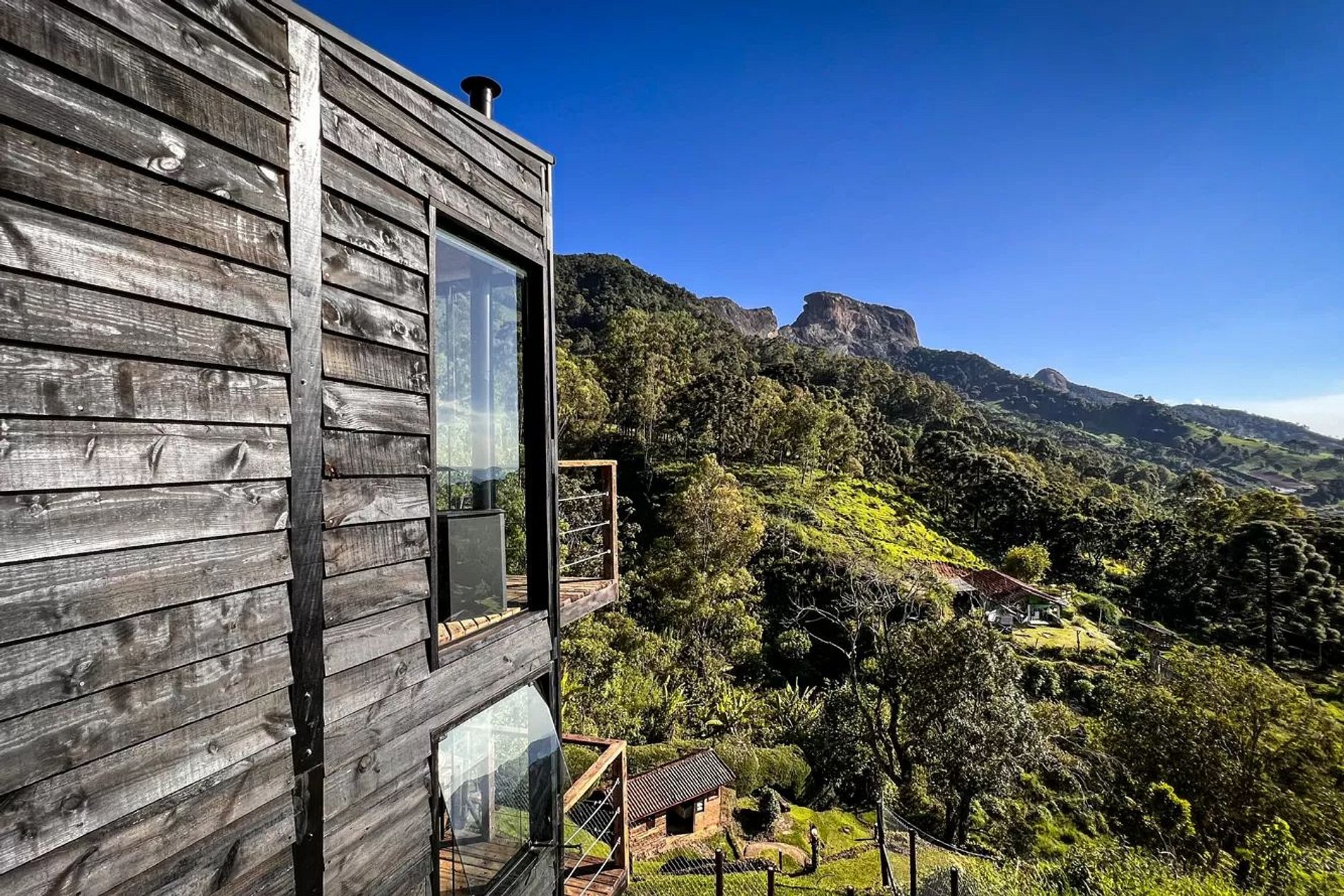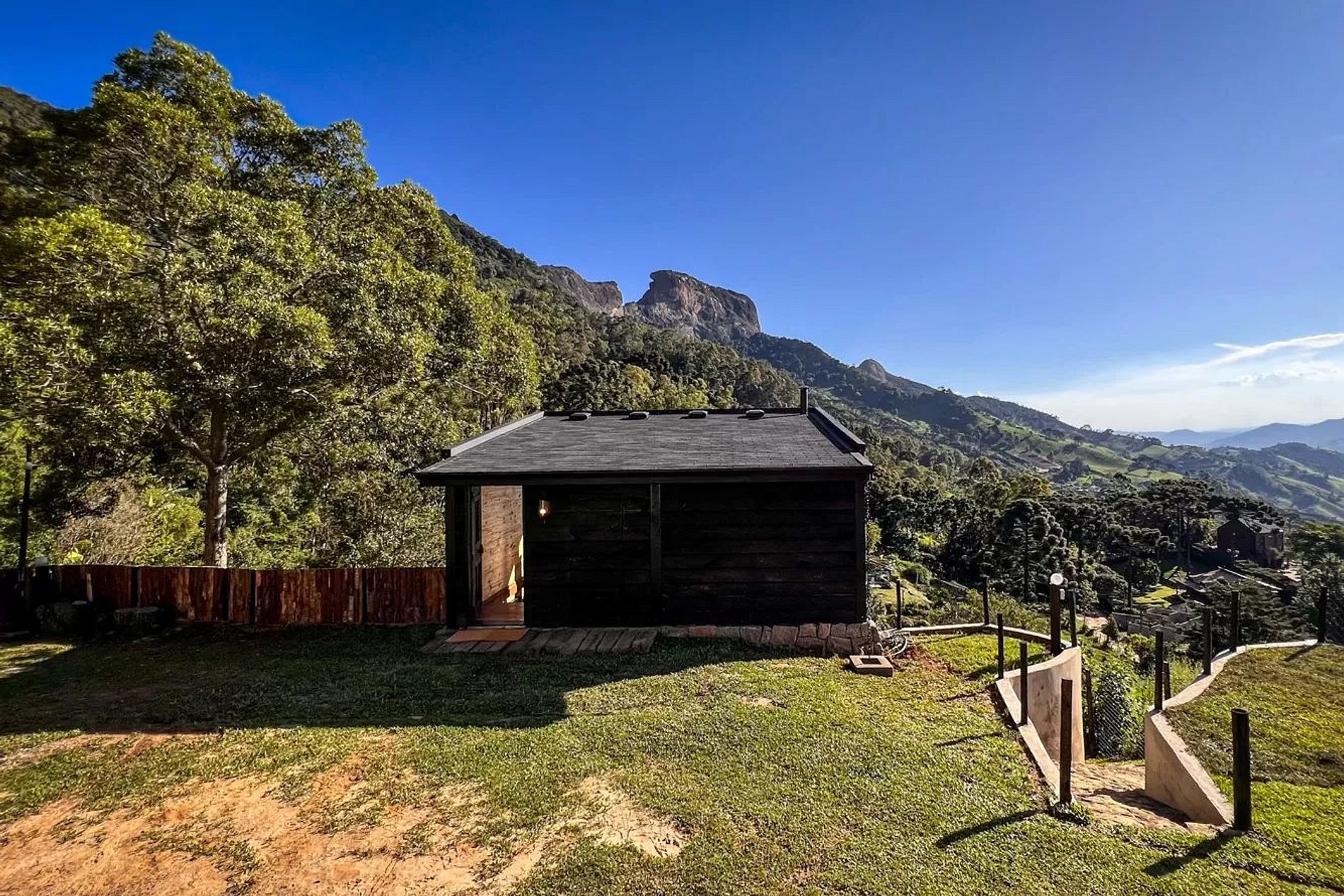 A Cabana Cervo é muito aconchegante e tem uma vista incrível para a Pedra do Baú, montanhas e vale.