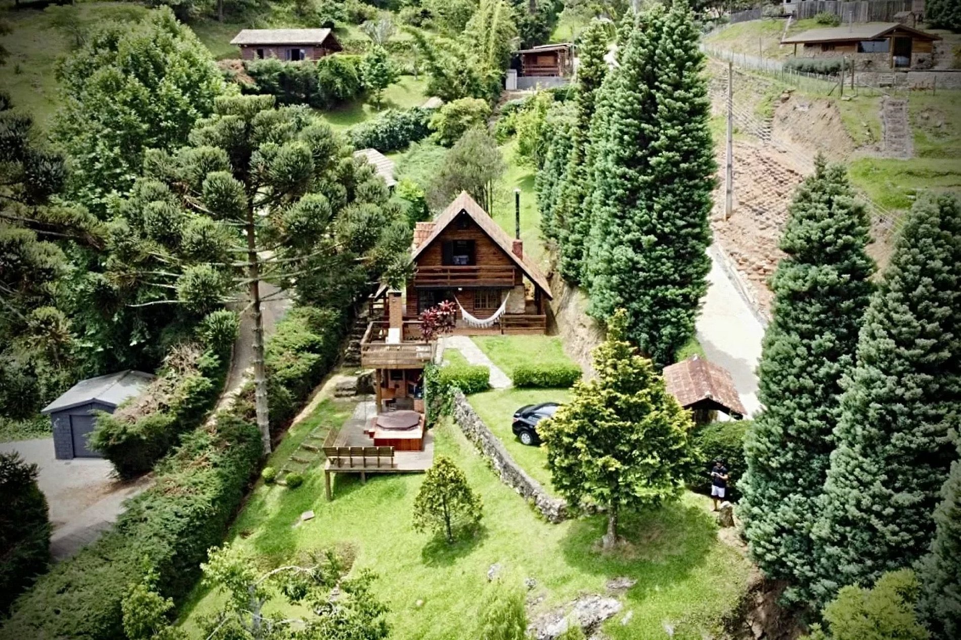 A Cabana fica a 11km do centro de São Bento do Sapucaí, cerca de 20/30 minutos de carro. O acesso tem cerca de 800m de estrada de terra,, mas mesmo neste trecho a maioria das subidas tem calçamento de pedras e/ou bloquetes.. É um local no alto das montanhas, portanto na estrada é esperado que pegue bastante subida. Carros comuns acessam o local diariamente (carros de passeio, 1.0, etc). Carros baixos podem pegar embaixo por conta das erosões da via. Motoristas que não tem intimidade com estrada de terra podem sofrer um pouco no primeiro contato. Em épocas de chuva a estrada pode fica um pouco mais escorregadia e com erosões.